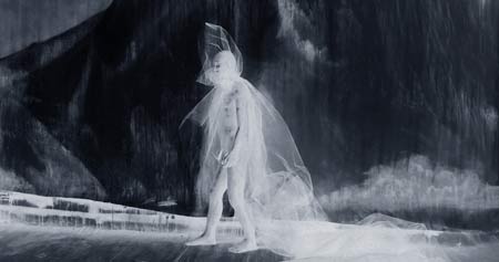 The time stands still, the moments are everlasting. The nameless characters turn into numb figures, surfacing and disappearing like mental tatters. The protagonist is trapped and strays through a confusing construction of thoughts, finally losing herself.